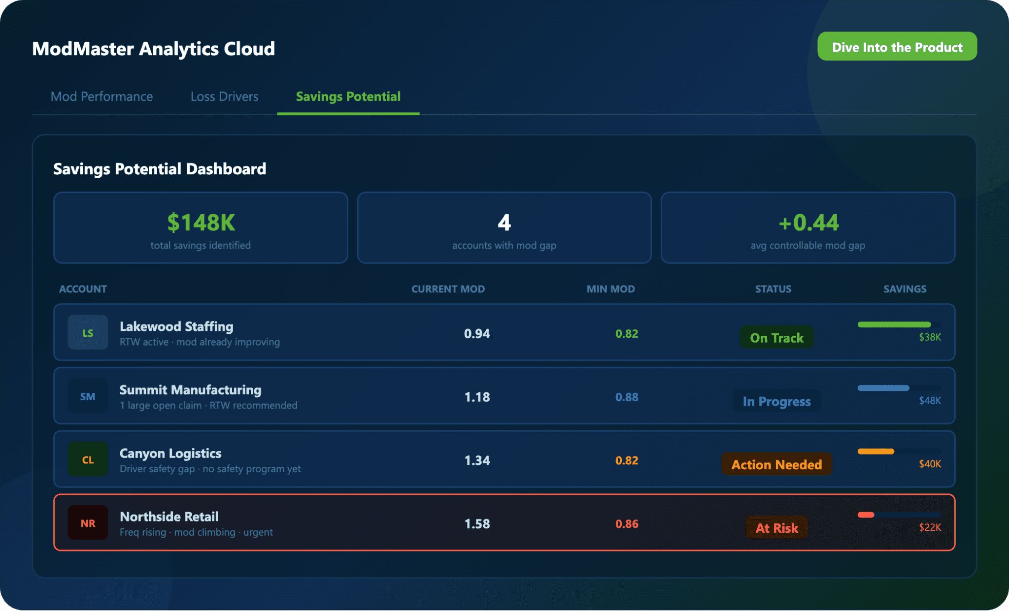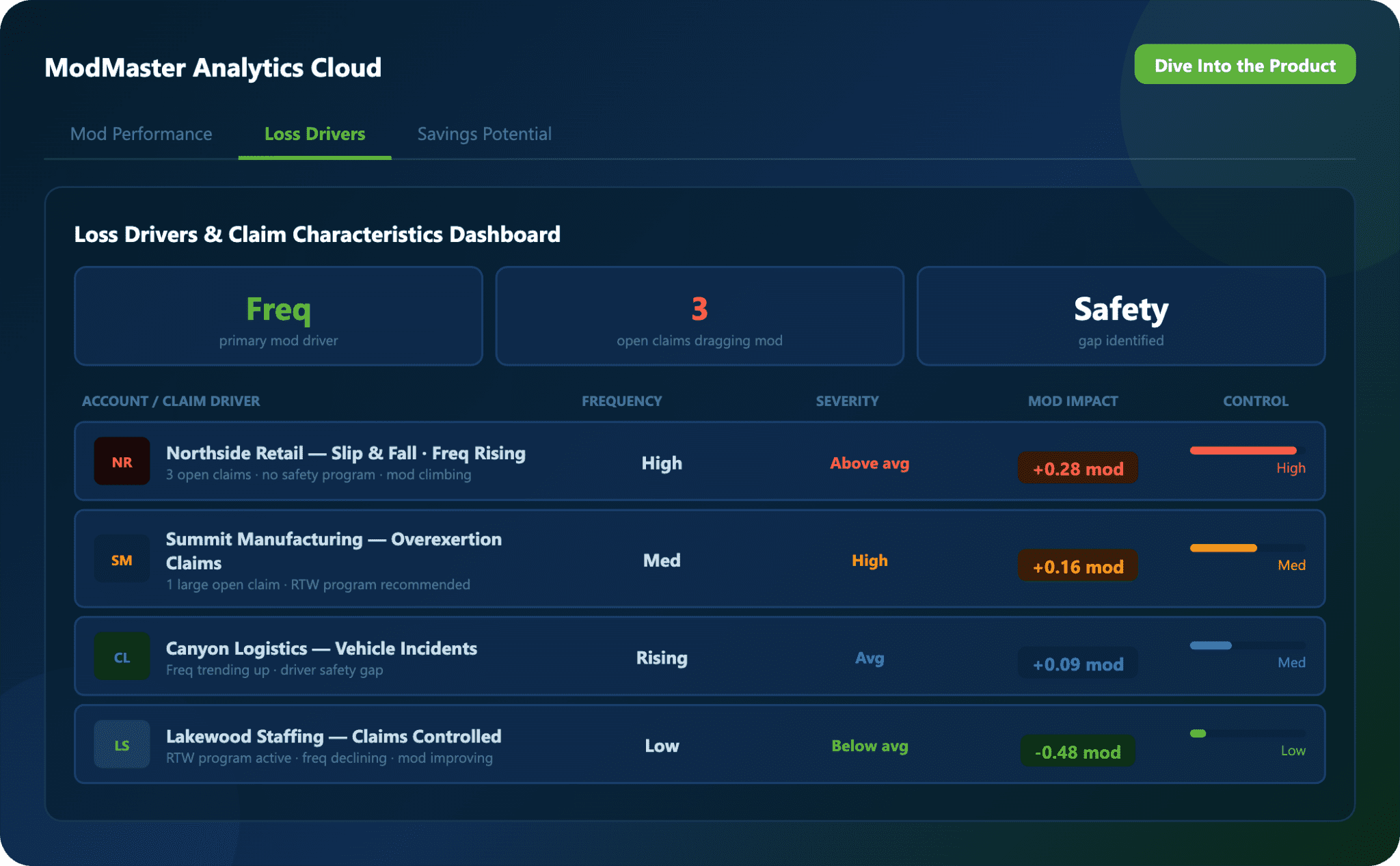 ModMaster connects losses to mod performance, helping identify controllable loss drivers. You can integrate it with Content Cloud resources, such as return-to-work programs and safety materials, to get more cost-saving recommendations.