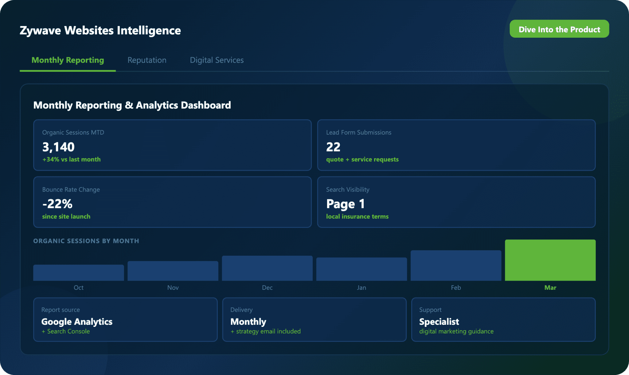 Receive strategy updates from your Digital Marketing Specialist about performance, site analytics, and recommended adjustments.